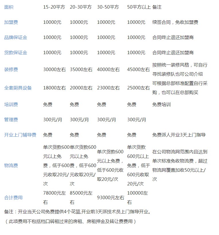 加盟投資明細表